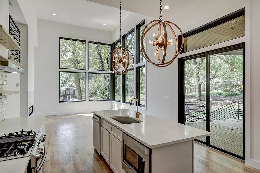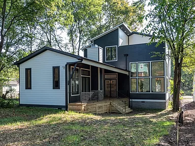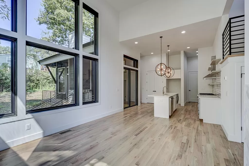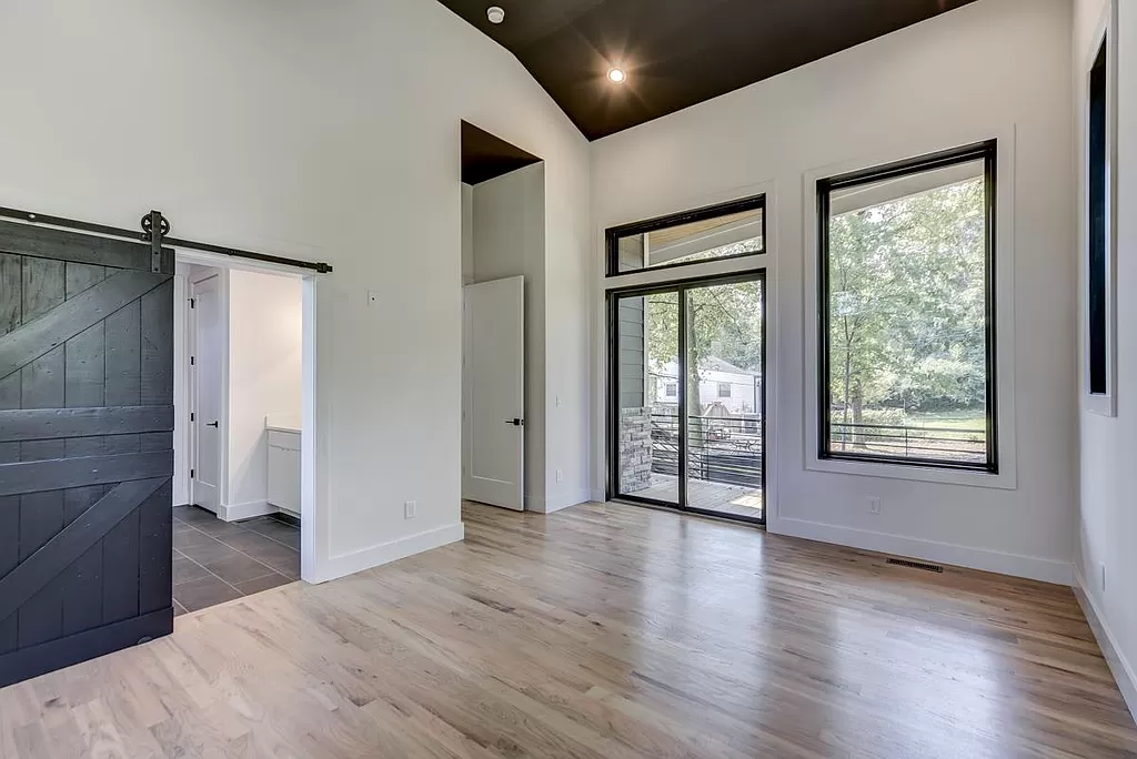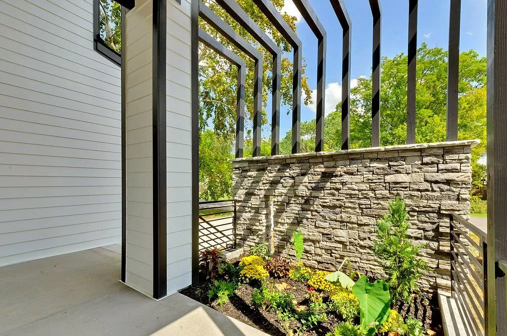 Village Court is a floorplan that sprang to life from my initial sketches. I shared my vision with the architect, and together, we sculpted this stunning contemporary masterpiece. I enjoyed designing the exterior of this home. The original drawings had stone going all the way to the top, and I was excited about materials to help reflect the aesthetic and to save on the overall budget. To infuse a touch of Nashville charm, I incorporated barn doors, and for a bold contrast, I painted the inside of the windows black, adding an unexpected twist to the modern design.I even added a custom plantar in the front of the home to display the gorgeous garden. I love this floorplan and hope to use it again.